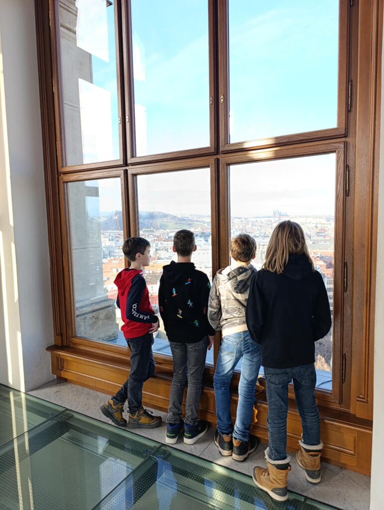Během našeho desetikilometrového objevování města jsme si prohlédli Prašnou bránu, Staroměstské a Václavské náměstí, kde jsme ochutnali skvělé trdelníky. Část Národního muzea jsme prošli i zevnitř. Tam děti nejvíc zaujala vyhlídka z kupole, svítící kameny a mamut. J