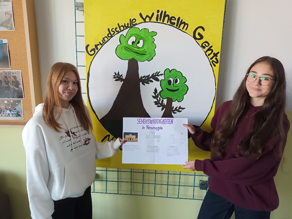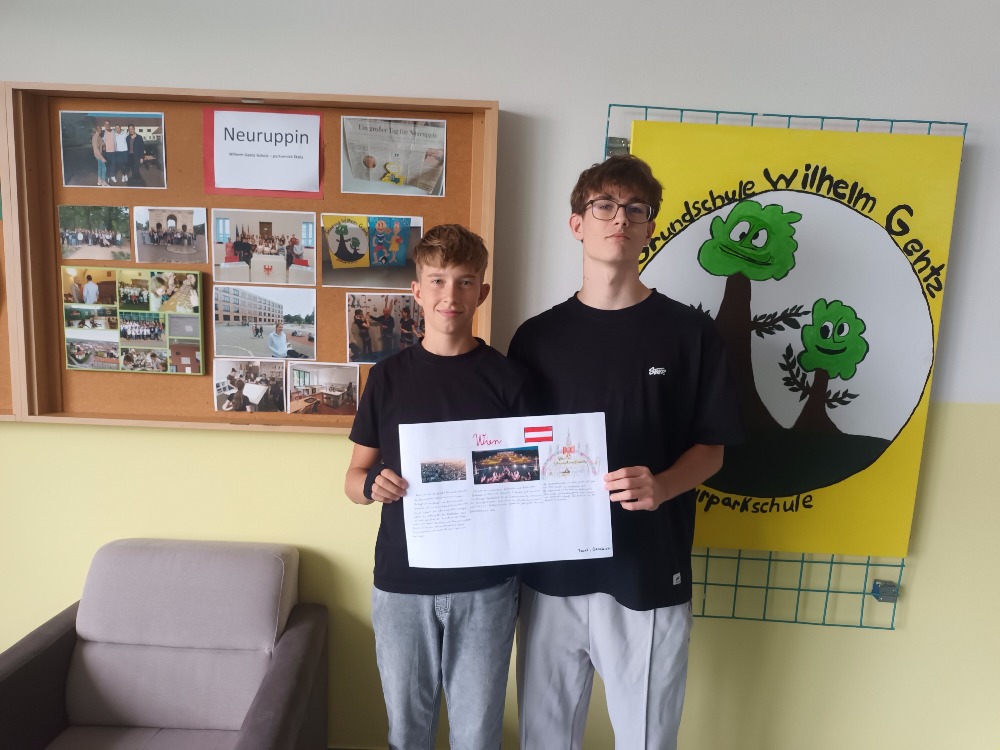 Výstupem projektu tak byly originální plakáty, které byly zaměřeny na důležité informace o partnerské škole, okolí Neuruppinu a o německy mluvících zemích, především Německu, Rakousku a Švýcarsku.