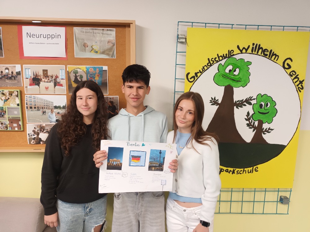 V rámci Dne evropských jazyků žáci devátého ročníku pracovali ve skupinách na projektu, jehož cílem bylo prohloubit povědomí o německy mluvících zemích a seznámit se s kulturními a geografickými zajímavostmi těchto oblastí. Přidanou hodnotou byla témata spojená s naší německou partnerskou školou Wilhelm Gentz Schule in Neuruppin.