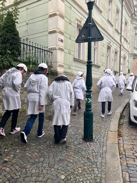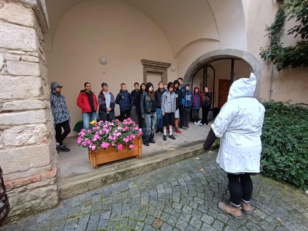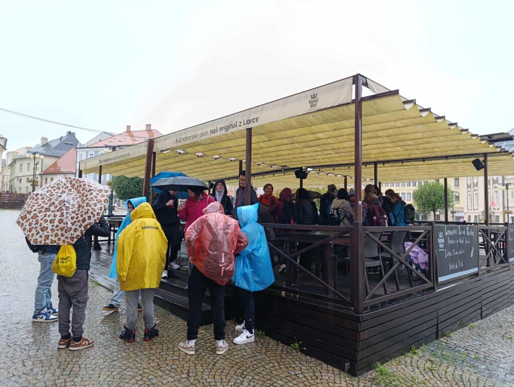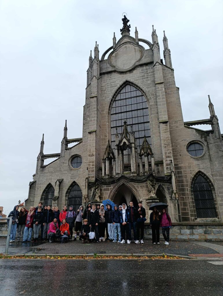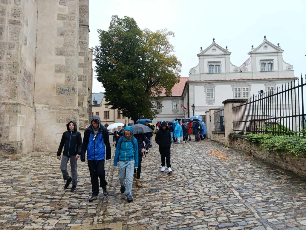 Zeměpisná exkurze 8. B a 8. C bohužel vyšla na chladný deštivý den. Památky města jsme si tedy prohlíželi s deštníky nebo zabaleni v pláštěnkách. Venkovní aktivity jsme omezili, ale cestou od vlakového nádraží jsme viděli Kostel Matky Boží Na Náměti, sady Dr. Bedřicha Pacáka u Vlašského dvora a chrám sv. Barbory, památku UNESCO.