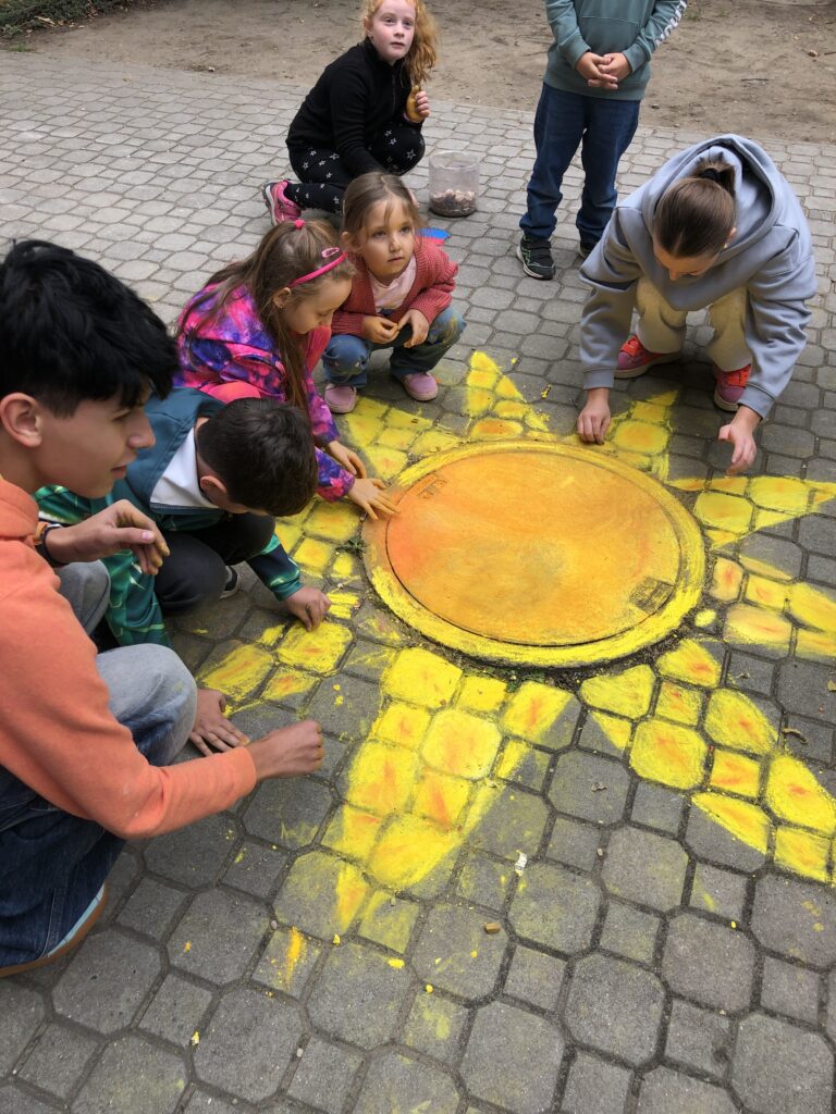 Šikovní výtvarníci z Výtvarných technik tentokrát pracovali s barevnými křídami na školním dvoře. Úkolem bylo najít vhodné místo – prostor a dokreslit ho co nejnápaditěji. Do některých obrázků se s vervou zapojily i děti ze družiny …. Byla to prima akce a dokreslené motivy jsou moc hezké. Však se podívejte :o))