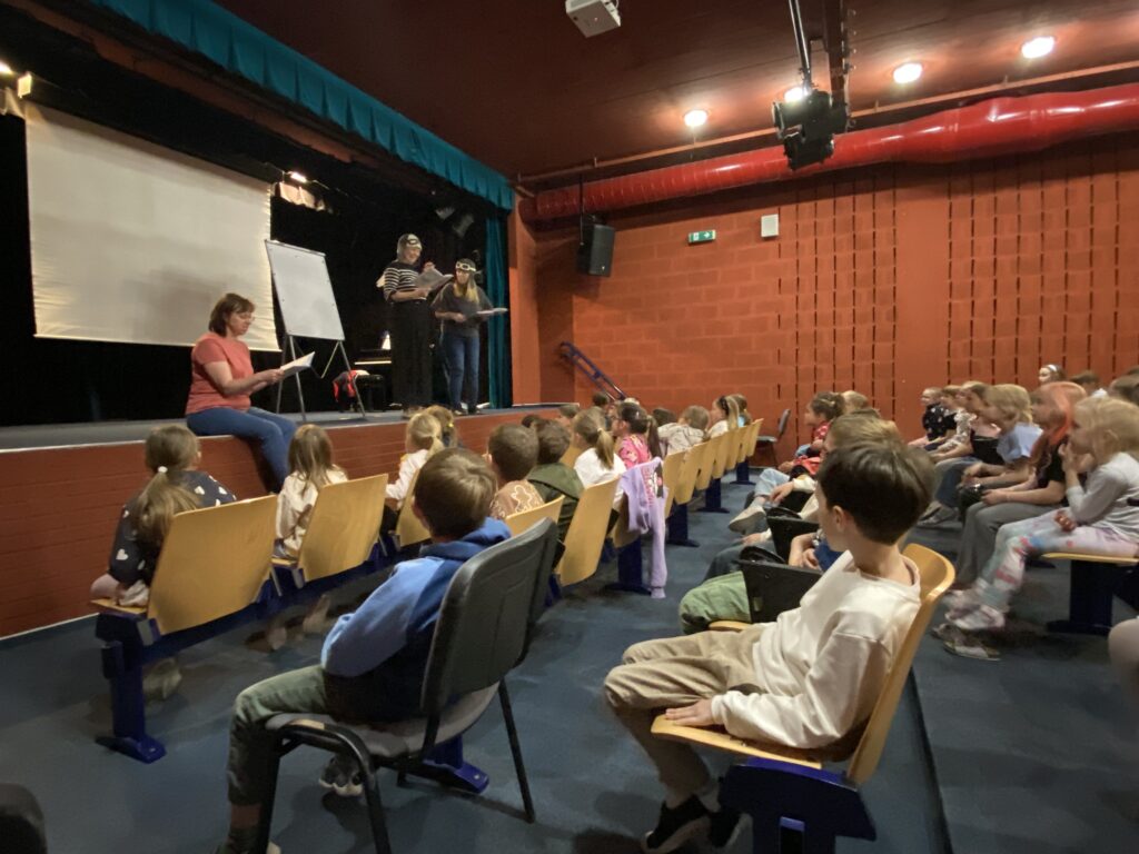 Školní družinu navštívila Městská knihovna Nymburk. Paní knihovnice všem přiblížily zimní olympijské sporty formou pantomimy a hádanek, které ztvárnily děti. Na závěr nám přečetly a vtipně zdramatizovaly příběh „Sportovní pohádky” od Zuzany Pospíšilové.