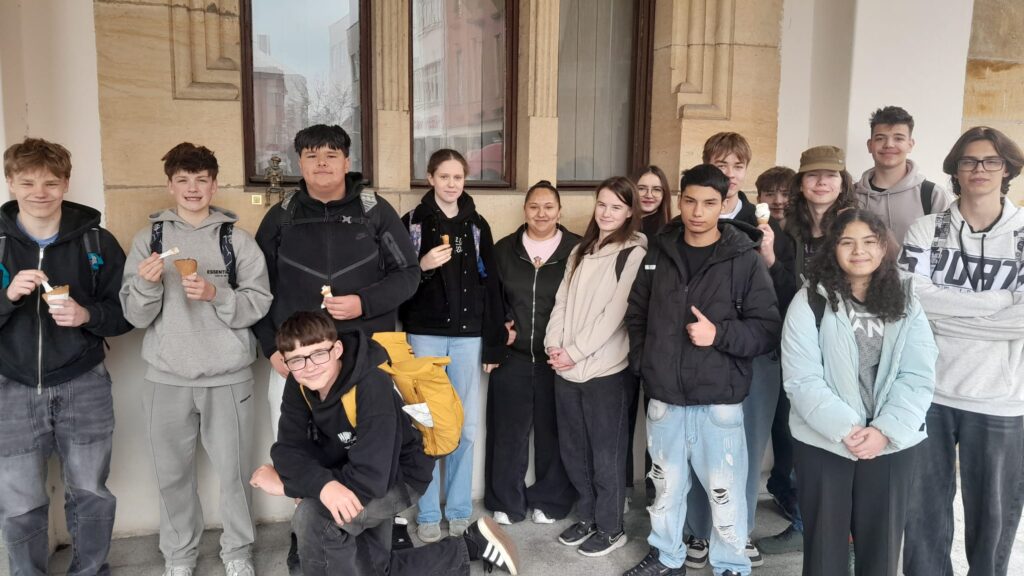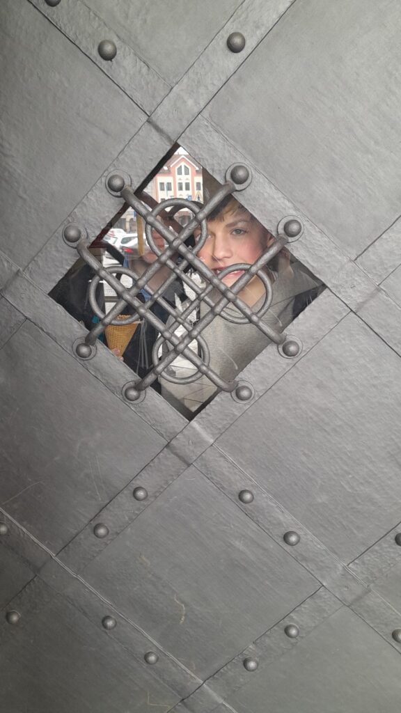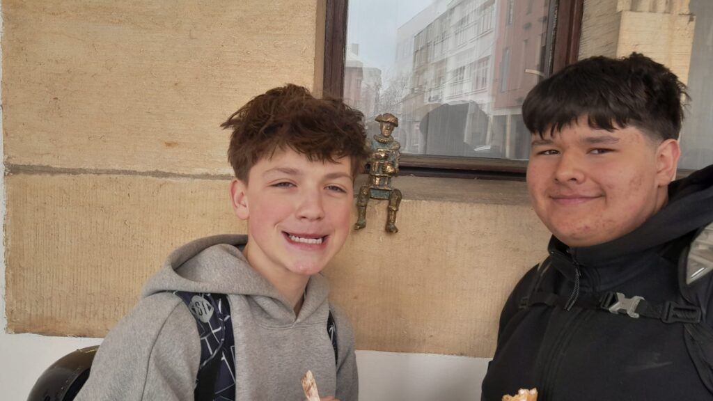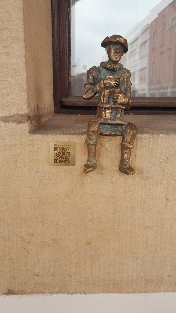 jsme se vydali během hodiny ČJ hledat, jednoho  z nich, byl to Hána z Rathausu. Našli jsme ho na okně radnice, podívali jsme se dovnitř, kde jsme viděli několik soch. O skřítkovi jsme se dozvěděli pomocí QR kódu plno zajímavých věci