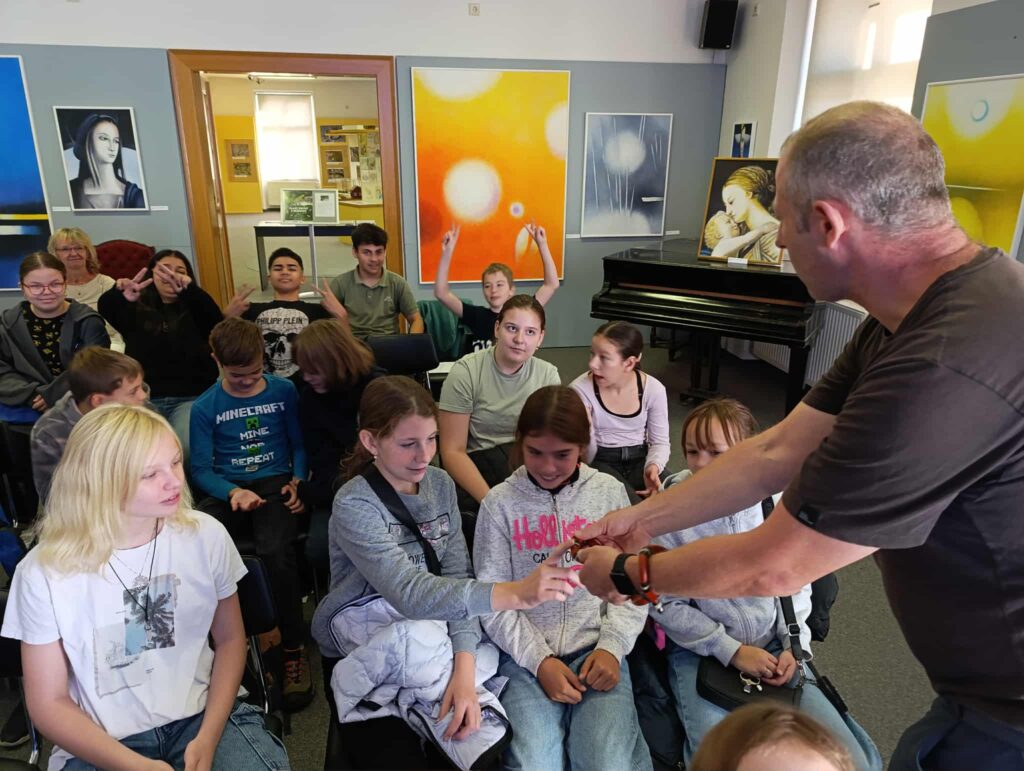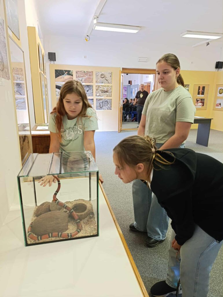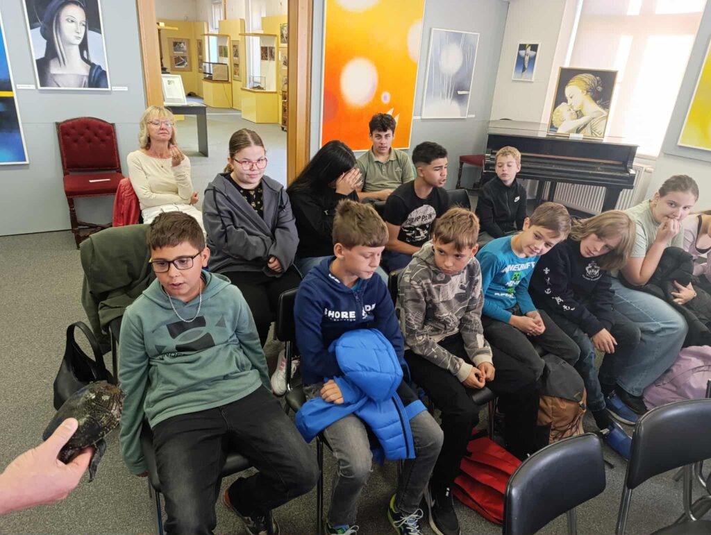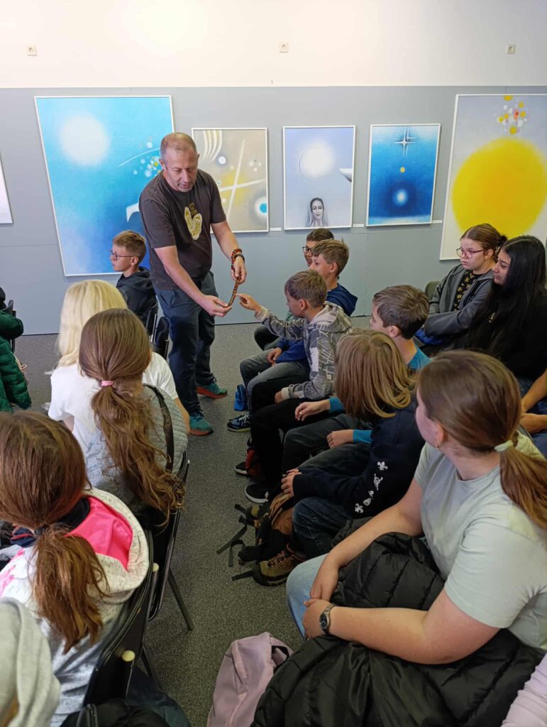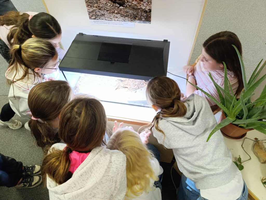 Šešťáci se vlakem vydali do Poděbrad, aby navštívili Polabské muzeum, kde probíhala výstava plazů. Zatímco poslouchali odborný výklad, prohlíželi si krásné a názorné velkoformátové fotografie, modely plazů i živé zástupce (jednoho z hadů si většina dětí i pohladila). Během exkurze jsme měli možnost seznámit se s plazi, kteří se nachází v České republice. JP