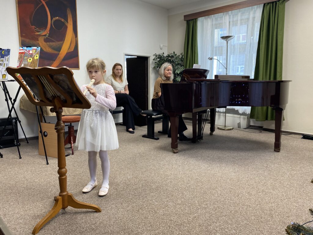 Ve čtvrtek 11.12.25 si děti ze II. a IV. oddělení ŠD zpříjemnily vánoční atmosféru koncertem v Základní umělecké škole v Nymburce. Zazněly tóny violoncella, akordeonu, příčné flétny nebo piana. Na závěr si děti zazpívaly vánoční koledu „Půjdem spolu do Betléma “ v doprovodu piana s paní ředitelkou Trnečkovou.