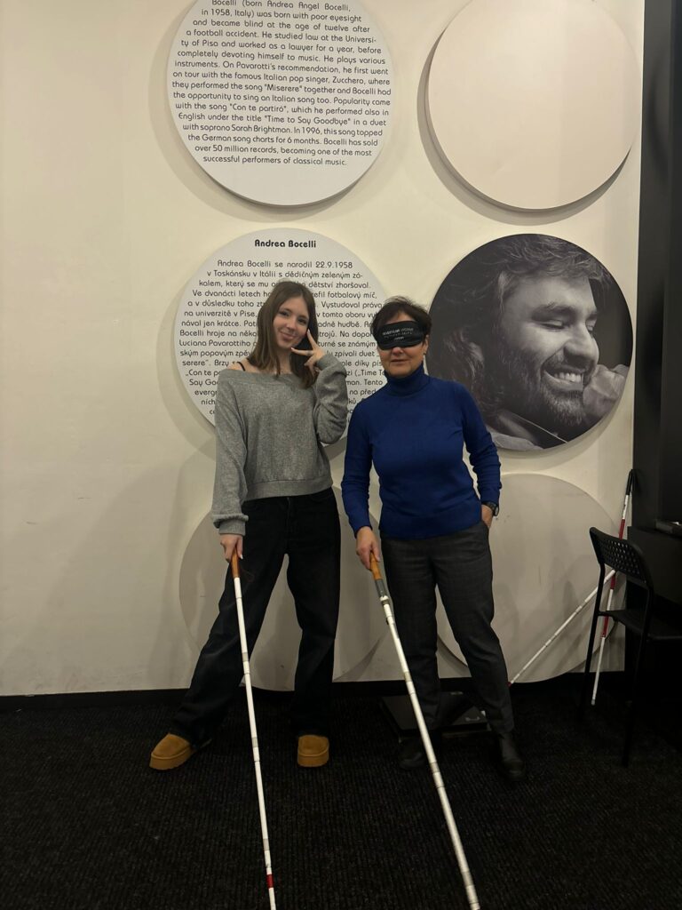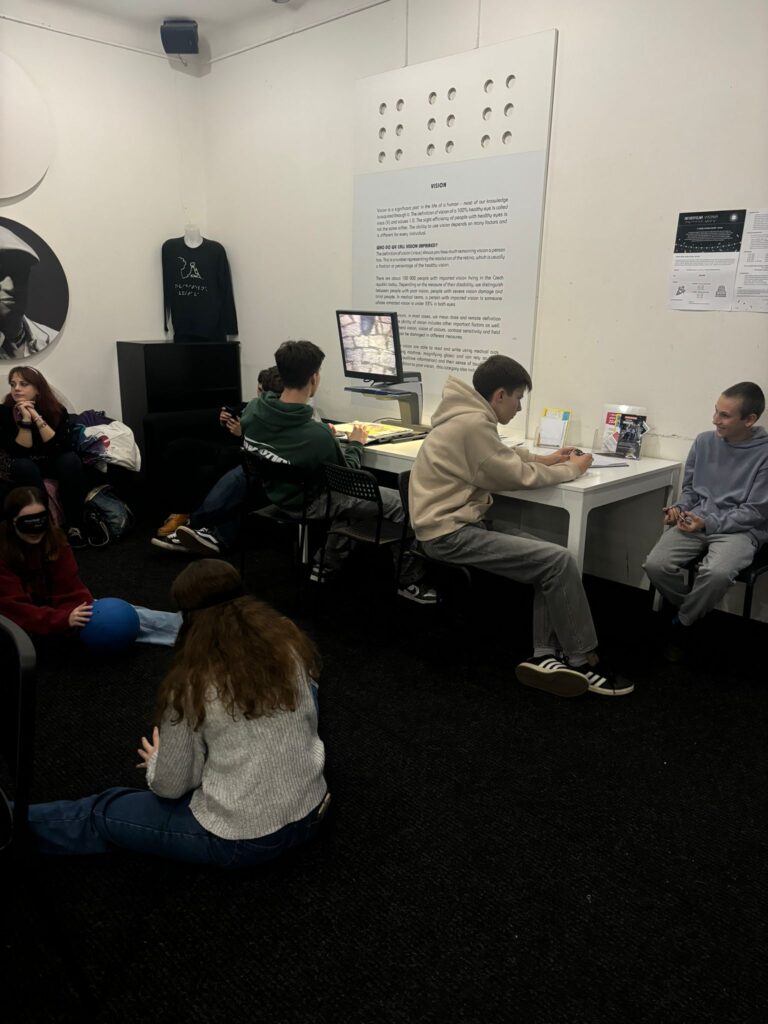 Deváťáci se 9. prosince také vydali na exkurzi do Prahy. Tentokráte na Neviditelnou výstavu, kde si na vlastní kůži vyzkoušeli být jednu hodinu ve světě nevidomých. Intenzivním zážitkem byl pohyb po bytě, na ulici i v přírodě bez pomoci zraku. Nejtěžší byl patrně přechod potoka přes můstek a pohyb po koupelně. Průvodci světem tmy byli skuteční nevidomí, kteří ochotně zodpověděli zvídavé otázky na jejich život. Návštěva výstavy byla nejen adrenalinovým zážitkem, ale i podnětem k zamyšlení.