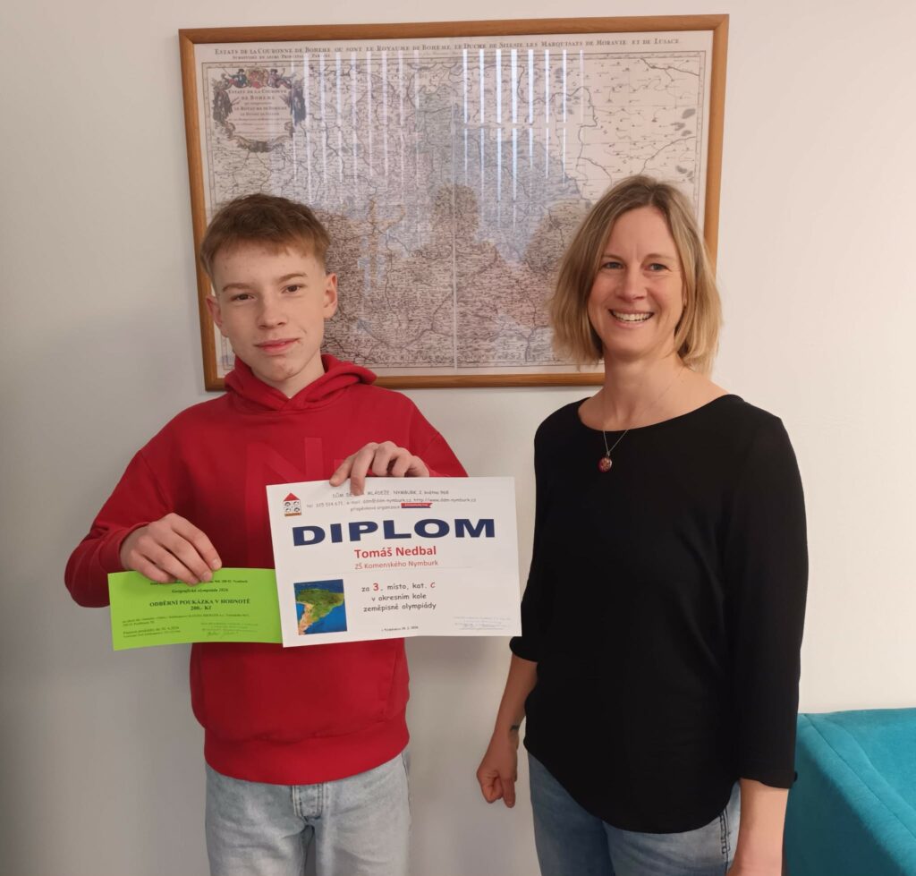 Tomáš předvedl, že má velké obecné geografické znalosti, které dokáže využít v praxi a ovládá práci s mapami. V konkurenci 15ti studentů z 8. a 9. tříd základních škol a gymnázií našeho okresu, obsadil skvělé 3. místo!