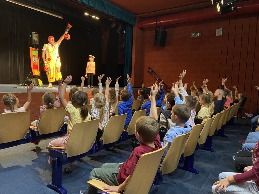 Ve čtvrtek 25.9.25 se uskutečnilo v Auditoriu „Vítání prvňáků v ŠD” vystoupením Honzy Krejčíka s názvem Cestou, necestou. Vtipnou a zábavnou formou děti seznámil se základy dopravní výchovy a z vystoupení si odnesly dobrou náladu i ponaučení.