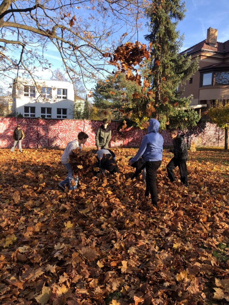 Listopadové počasí bývá už chladnější, letos ale teploty lámaly rekordy, a tak jsme jednu hodinu VV trávili venku v listí. Úkolem bylo prostorové zobrazení nějakého zvířete, což se všem povedlo. Však se podívejte ……  Konec hodiny byl pak ve znamení „koulování“ :o))